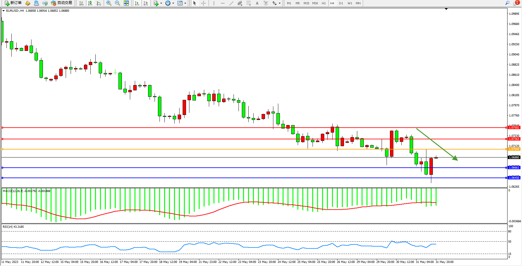 交易策略:1.07050下方看跌,目标1.06663 1.06450