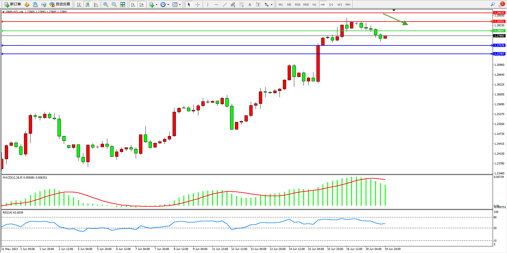 英镑兑美元维持1.27892附近震荡,英国5月通胀数据周三公布,预期CPI较去年同期上涨8.5%;英国央行周四公布利率决议;预计加息25个基点至4.75%。