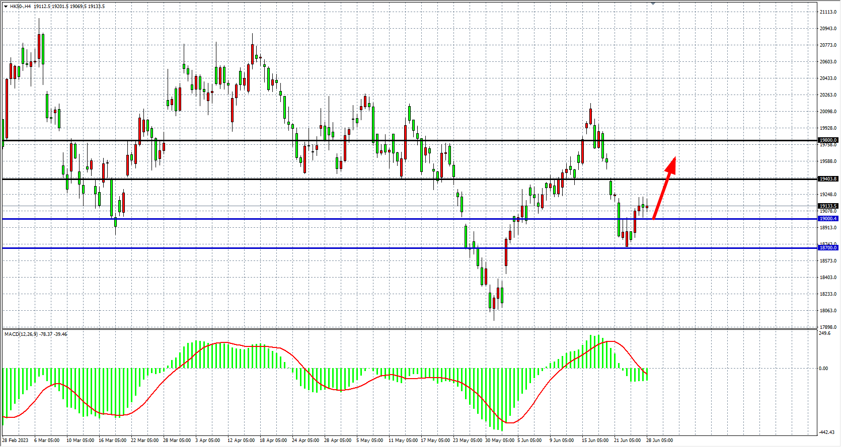 4小时图看,恒指继续维持1900点之上窄幅运行,MACD量能维持在零轴之下,趋势出现反弹动能,支撑关注19000-18700,压力19400-19800。