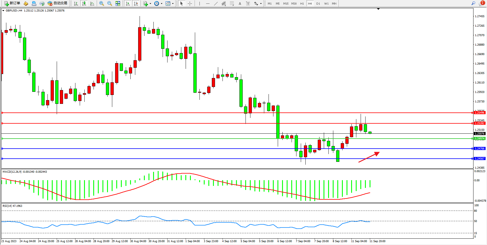 备选策略:1.24974下方看跌,目标1.24766  1.24567