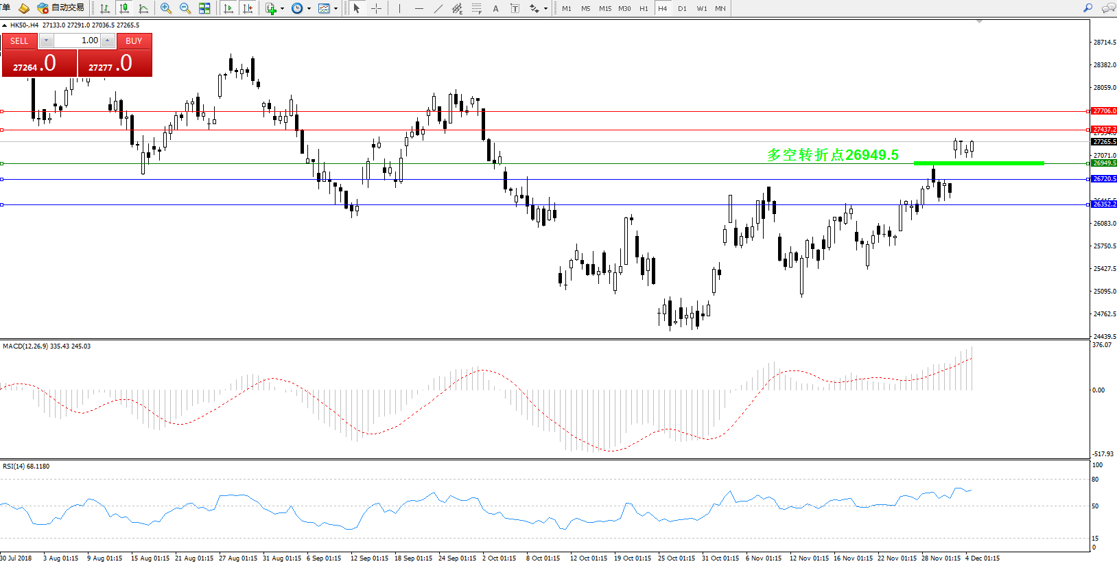 中美两国在G20会议间隙举行的会议上达成贸易暂歇协议,表示将举行谈判以缓和贸易紧张关系,美国方面将推迟对中国2,000亿美元商品上调关税的计划。中国内地的经济恶化很大程度不是贸易战的因素,只是很多人不敢直言。换言之,内地经济下滑的趋势无法避免。
