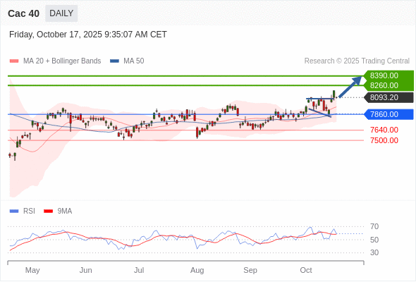 Cac 40 短线: 看涨。