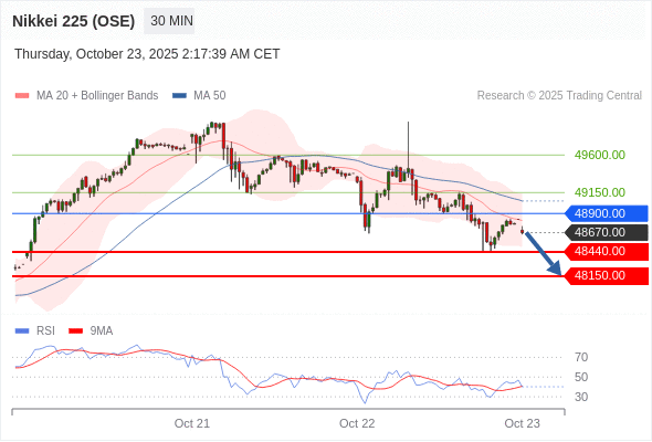 交易策略: 在 48900.00 之下,看跌,目标价位为 48440.00 ,然后为 48150.00 。