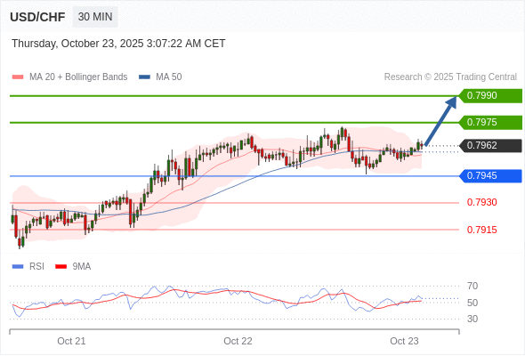 在 0.7945 之上,看涨,目标价位为 0.7975 ,然后为 0.7990 。
