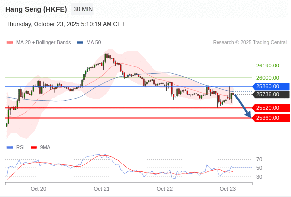 交易策略: 在 25860.00 之下,看跌,目标价位为 25520.00 ,然后为 25360.00 。