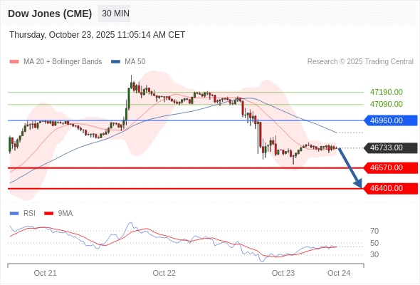 交易策略: 在 46960.00 之下,看跌,目标价位为 46570.00 ,然后为 46400.00 。
