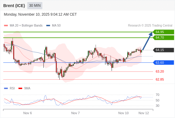 在 63.60 之上,看涨,目标价位为 64.70 ,然后为 64.95 。