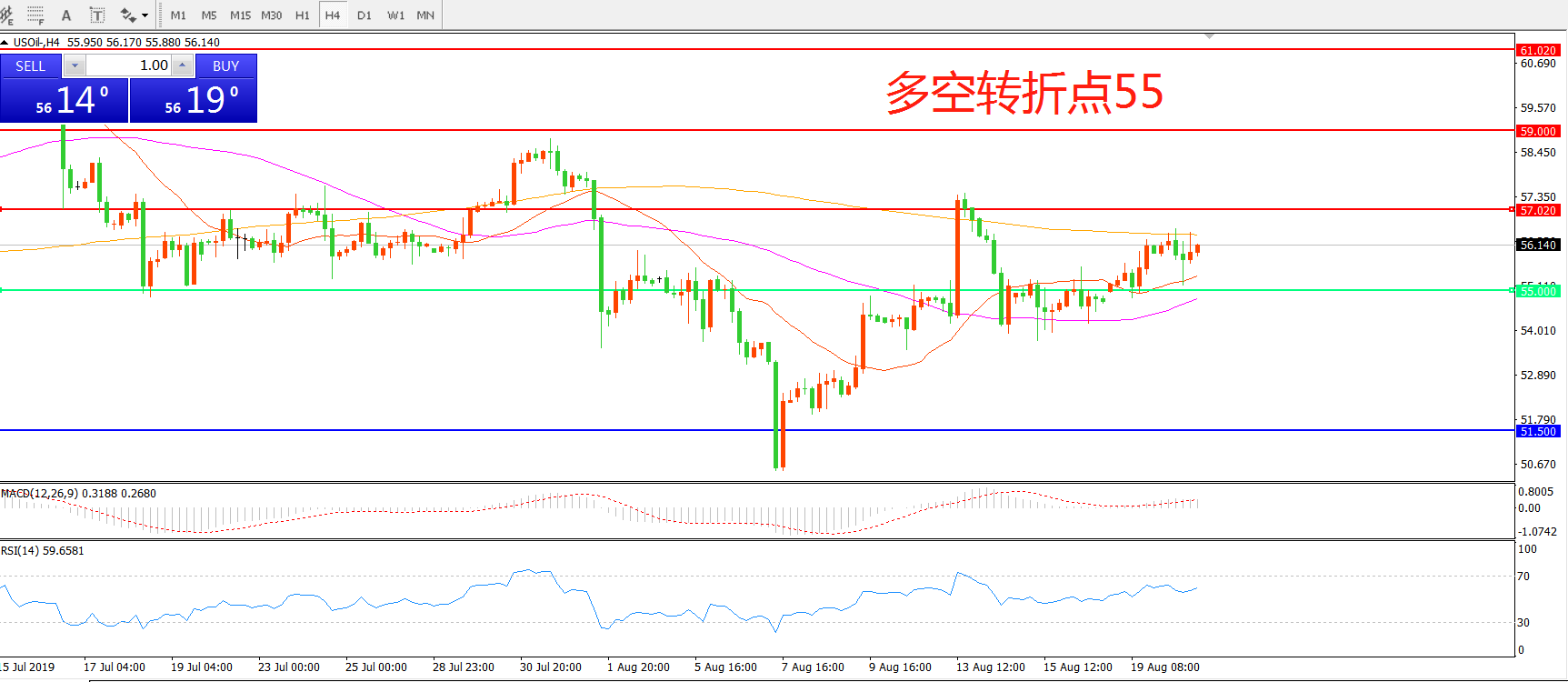 交易策略:在55.00之上看涨,目标57.00   59.00