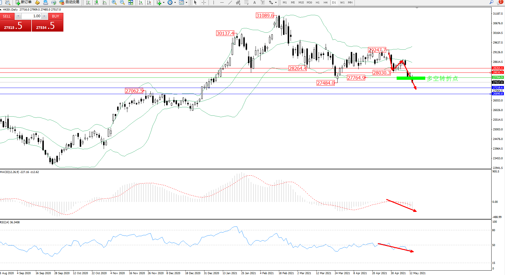 香港恒生指数5月13日(周四)收盘下跌512.37点,跌幅1.81%,报27718.67点;港股三大指数全线大跌,热门行业板块重挫,大型科技股尾盘跌幅进一步扩大,致恒生科技指数大幅收跌3.33%报7599点,大型科技股快手大跌6.4%,网易跌超4%,腾讯、阿里巴巴均跌超3%,区块链概念股等全线下跌。两者拖累恒指下跌150点;国内积极应对大宗商品上涨及美联储加息预期升温,大市成交额为1635亿港元,南下资金逆势净流入49.85亿港元。南下资金今日净买入港股42.9亿港元。美团-W、腾讯控股、小米集团-W净买入额位列前三,分别获净买入12.01亿港元、10.12亿港元、3.46亿港元。净卖出前三个股为香港交易所、海尔智家、紫金矿业,分别遭净卖出1.22亿港元、0.59亿港元、0.28亿港元。香港交易所上市债券市场持续向好,四月共有43只债券在港上市,集资额达1933亿港元,创近六个月新高。与去年同期相比,月度债券上市数量增加逾3倍,对应的上市债券集资额增加逾1.4倍,反映市场复苏已步入正轨和上市债券市场的持续发展。截至四月底,香港交易所上市债券市场存续债券数量达到1656只,较去年同期增加约18%;市场规模已超过6万亿港元。