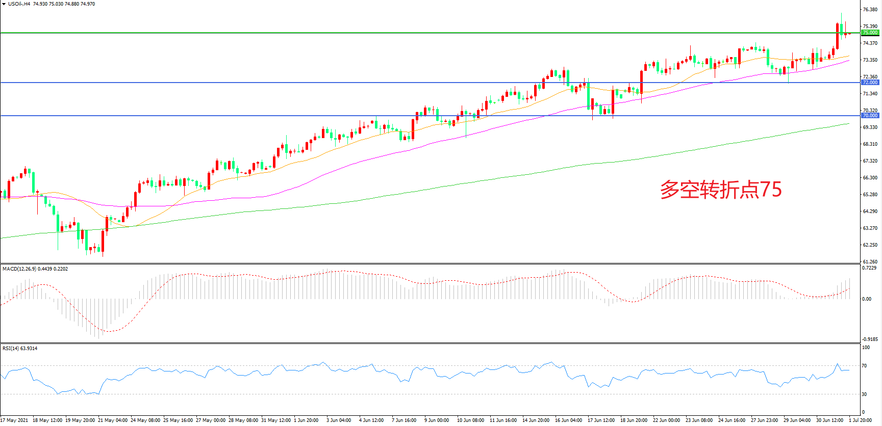 交易策略:在75.00之上看涨,目标78.00 80.00