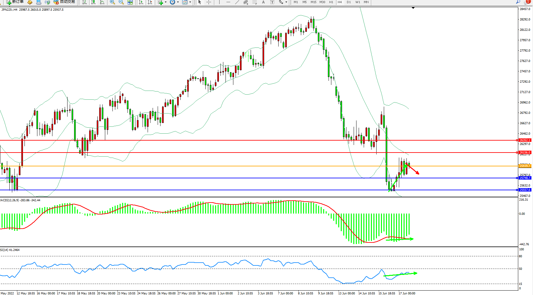 日经225指数6月17日(周五)收盘下跌454.70点,跌幅1.72%,报25976.50点。日本央行周五维持超低利率不变,并坚持将借贷成本保持在“目前或更低”水平的指导意见,表明其专注于支持经济从新冠疫情中复苏的决心。