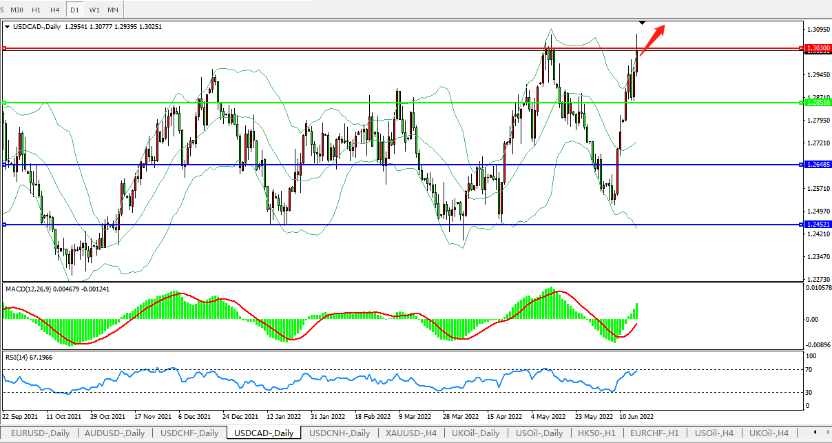 日线图看:持续运行于布林上轨并不断上攻 ,布林带指标开口走势上移中,MACD于0轴下上攻且量能快速放量,RSI快速走强,预计短期汇价大概率将进一步上行。