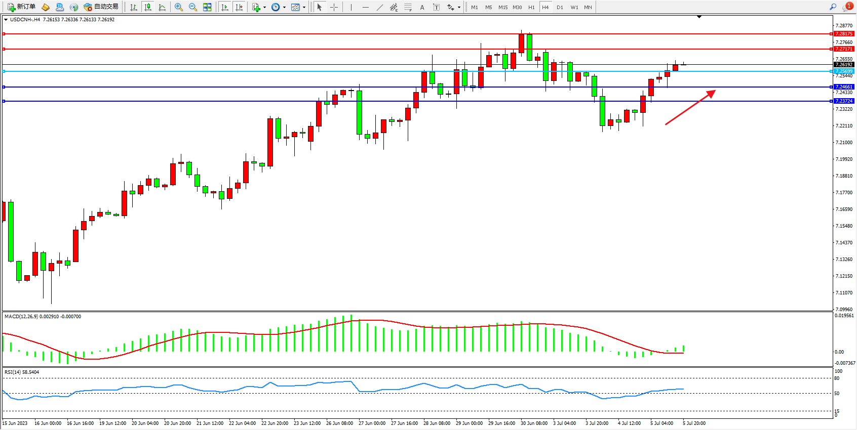 交易策略:7.25699上方看涨,目标7.27171  7.28175