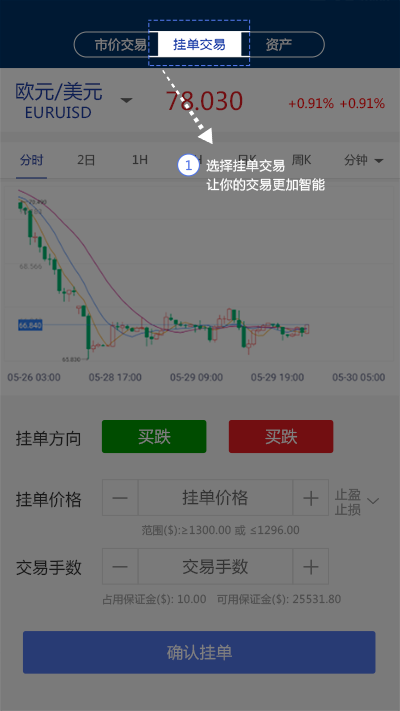 3.设置止盈价,止损价,因现价实时波动,设置时需注意设置的价格符合参考范围